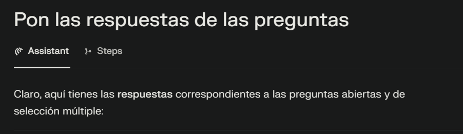 Claro, aquí tienes las respuestas correspondientes a las preguntas abiertas y de selección múltiple: